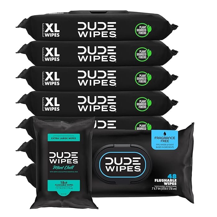DUDE Wipes afføringssæt - 9 pakker, 432 skyllemiddelservietter - Mint Chill, Shea Butter og uparfumeret - ekstra stor og septisk sikker